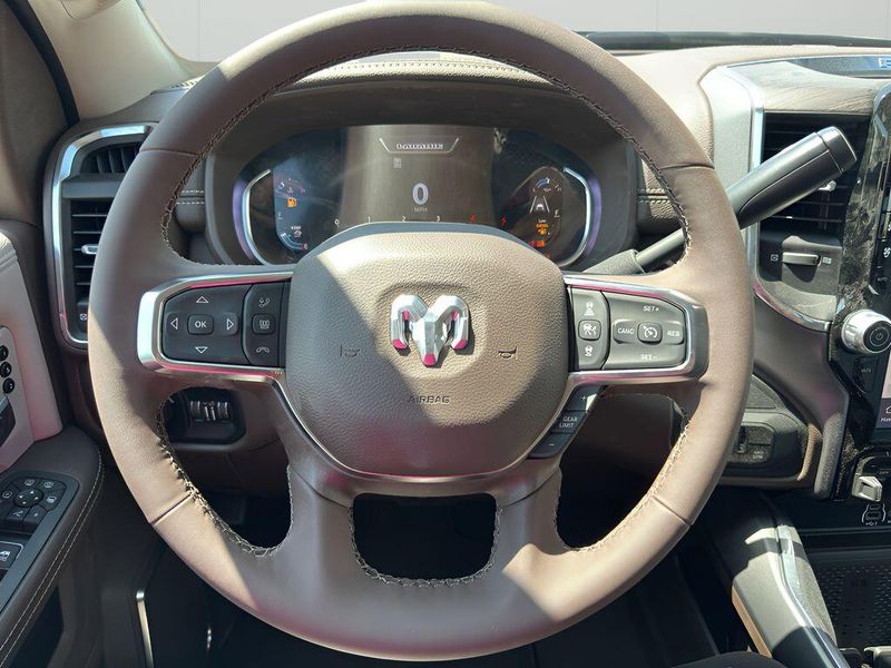 Bluetooth technology is built into the Ram 3500, keeping your hands on the steering wheel and your focus on the road. This model is pure luxury with a heated steering wheel. The leather seats in this Ram 3500 are a must for buyers looking for comfort, durability, and style. A trailer braking system is already installed on this Ram 3500. The vehicle is built for driving comfort with a telescoping wheel. Never get into a cold vehicle again with the remote start feature on this 2025 Ram 3500 . The installed navigation system will keep you on the right path. Set the temperature exactly where you are most comfortable in the Ram 3500. The fan speed and temperature will automatically adjust to maintain your preferred zone climate. The vehicle has a diesel engine. This Ram 3500 offers Apple CarPlay for seamless connectivity. When you encounter slick or muddy roads, you can engage the four wheel drive on this Ram 3500 and drive with confidence. This 2025 Ram 3500 has auto-adjust speed for safe following. This unit has adjustable pedals that are luxurious and safety conscious.