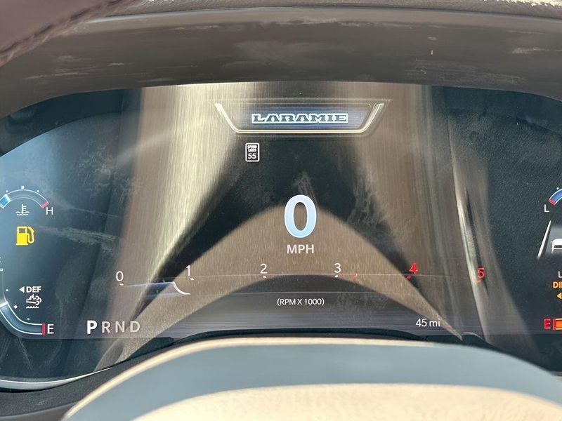 Laramie Level 1 Plus Equipment Group: Center Stop Lamp with Cargo View Camera; Rain Sensitive Windshield Wipers; Power Adjustable Pedals with Memory; LED Bed Lighting; Traffic Sign Recognition; Auto Power-Folding Mirrors; Adaptive Steering System; Exterior Mirrors with Heating Element; Auto Dim Exterior Mirror; Drowsy Driver Detection; MOPAR Deployable Bed Step; Mirror Running Lights; Foam Bottle Insert (door Trim Panel); Power-Adjustable Convex Aux Mirrors; Active Lane Management System; Forward and Reverse Utility Lights; Leather Trimmed Bucket Seats; Power Heated Folding Telescopic Mirrors with Memory; Exterior Mirrors with Supplemental Signals; Exterior Mirrors Courtesy Lamps; MOPAR Spray in Bedliner; Remote Tailgate Release; #1 Seat Foam Cushion; Auto High Beam Headlamp Control; Chrome Exterior Mirrors; Exterior Mirrors with Memory; Power Adjust Mirrors; Power Telescoping Mirrors; Auto Dim Exterior Passenger Mirror; Auto Adjust in Reverse Exterior Mirrors Transfer Case Skid Plate Shield Chrome Flat Wheel-To-wheel Side Steps Chrome Bumper Package: Bright Rear Bumper; Bright Front Bumper