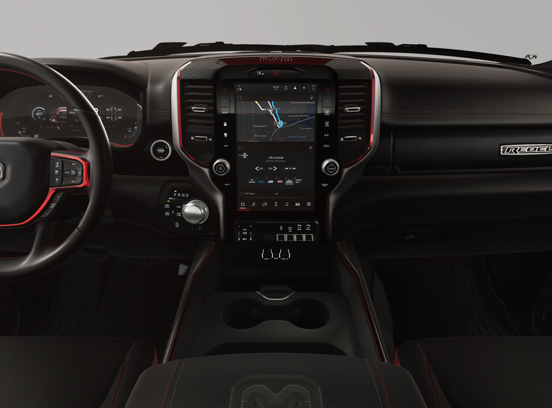 Quick Order Package 21W Rebel. Rebel Level 1 Equipment Group: Remote Tailgate Release; Exterior Mirrors with Heating Element; Auto Dim Exterior Driver Mirror; Rear Window Defroster; Wireless Charging Pad; Power Adjustable Pedals; Exterior Mirrors with Supplemental Signals; Black Exterior Mirrors; Convex Wide-Angle Exterior Mirror Insert; Exterior Mirrors Courtesy Lamps; Black Premium Power Mirrors; Auto Power-Folding Mirrors. MOPAR Black Tubular Side Steps. Trailer Brake Control. Diamond Black Crystal PC. **Equipment listed is based on original vehicle build and subject to change. Please confirm the accuracy of the included equipment by calling the dealer prior to purchase.**