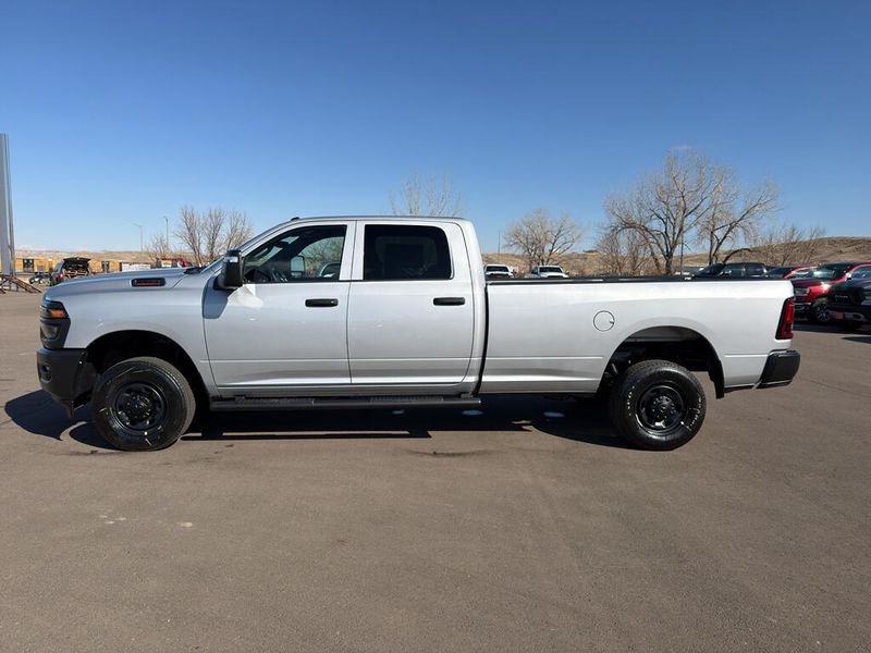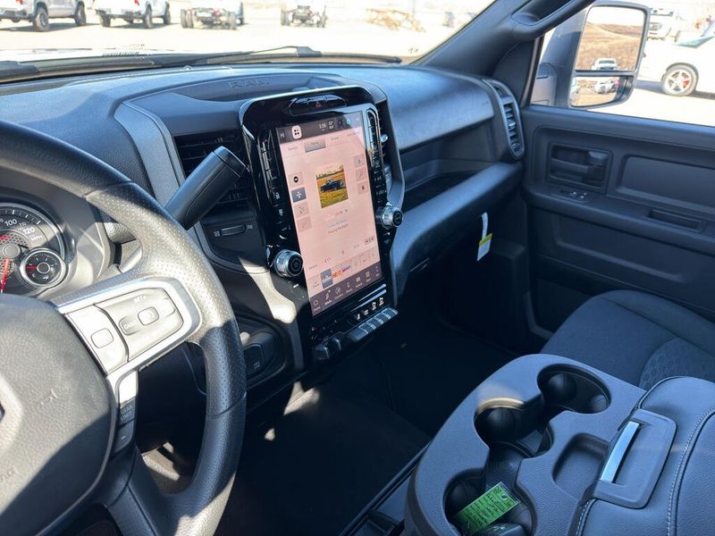 Tradesman Level 1 Equipment Group: Google Android Auto; SiriusXM Radio Service; For Details. Visit DriveUconnect.com; For More Info. Call 800-643-2112; Integrated Voice Command with Bluetooth; Emergency Vehicle Alert System (EVAS); Manual Folding Exterior Mirrors; 12" Touchscreen Display; Auto Power-Folding Mirrors; 4 Way Front Headrests; Front Armrest with Cupholders; Anti-Spin Differential Rear Axle; Remote USB Port - Charge Only; Manual Adjust 4-Way Front Passenger Seat; Mirror Running Lights; Exterior 115V AC Outlet; Alexa Built-In; Apple CarPlay; Power-Adjustable Convex Aux Mirrors; Forward and Reverse Utility Lights; Cloth 40/20/40 Bench Seat; Disassociated Touchscreen Display; Storage Tray; 115-Volt Auxiliary Front Power Outlet; Rear View Auto Dim Mirror; 40/20/40 Split Bench Seat; Rear Power Sliding Window; Connectivity - US/Canada; Rear Folding Seat; Tinted Acoustic Windshield Glass; GPS Navigation; 4G LTE Wi-Fi Hot Spot; GPS Antenna Input; Exterior Mirrors with Heating Element; MOPAR Black Tubular Side Steps; SiriusXM with 360L; Global Telematics Box Module; Connected Travel and Traffic Services; Black Exterior Mirrors; 2 Way Rear Headrest Seat; Carpet Floor Covering; Off-Road Info Pages; Selectable Tire Fill Alert; Trailer Tow Pages; 400W Inverter; HD Radio; Power Heated Folding Telescope Mirrors; Uconnect 5 Navigation with 12.0" Display Radio; Exterior Mirrors with Supplemental Signals; Exterior Mirrors Courtesy Lamps; Air Conditioning ATC with Dual Zone Control; Manual Adjust 4-Way Driver Seat; Manual Telescoping Mirrors; Power Adjust Mirrors; Power Telescoping Mirrors; Front and Rear Floor Mats; ParkSense Front/rear Park Assist System. Convenience Group. Quick Order Package 2UA Tradesman. MOPAR 20K Direct Mount 5th Wheel Hitch. 5th Wheel/gooseneck Towing Prep Group. MOPAR Black Tubular Side Steps. Anti-Spin Differential Rear Axle. Cloth 40/20/40 Bench Seat. 50 Gallon Fuel Tank. Silver Zynith. Transfer Case Skid Plate Shield. **Equipment listed is based on original vehicle build and subject to change. Please confirm the accuracy of the included equipment by calling the dealer prior to purchase.**