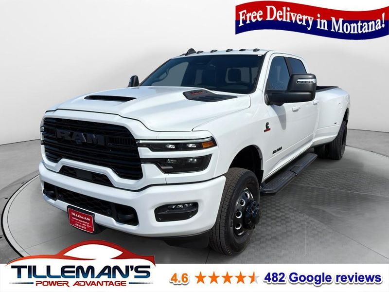 2026 Ram 3500 Laramie 4WD Dual Rear Wheels ? located in Havre, MT ? now available at the best price. This heavy-duty powerhouse pairs a proven 6-cylinder, 6.7L diesel engine with dual rear wheels for exceptional towing stability and payload capacity, making it ideal for ranch work, towing trailers, or heavy hauling across Montana terrain. Premium Laramie features include leather seats and automatic climate control for a comfortable cabin on long drives. Stay connected with Apple CarPlay and modern infotainment, while convenience features like remote start make cold Montana mornings easier. Safety and driving ease are enhanced by adaptive cruise control, helping maintain safe distances on highways and long hauls. This 2026 Ram 3500 Laramie 4WD offers a commanding presence, durable performance, and refined interior appointments. With the best price in Havre, MT, this truck delivers strong value for buyers seeking capability and comfort in one package. Whether you need a work-ready diesel with dual rear wheels for serious towing or a comfortable Laramie for daily driving, this Ram 3500 checks the boxes. Contact us today to schedule a test drive in Havre and experience this diesel-powered heavy-duty truck for yourself. Competitive financing options available.