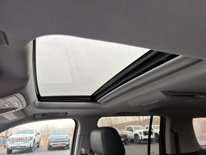 Sun. Entertainment and Destinations Package: AM/FM Stereo with Navigation; Rear Seat Entertainment System; Power Tilt-Sliding Sunroof with Express-Open/close. Preferred Equipment Group 1LT: Memory Settings; Leather-Appointed Seat Trim; Remote Vehicle Start; Power Liftgate; Rear Park Assist with Audible Warning; Floor Console with Storage Area; 6-Way Power Front Passenger Seat Adjuster; 18" X 8.5" High-Polished Aluminum Finish Wheels; 7. 500 lbs (3. 402 Kgs) GVWR; Enhanced Driver Alert Package; Driver Inboard and Front Passenger Airbags; Premium Smooth Ride Suspension Package; Universal Home Remote; Color-Keyed Carpeting Floor Covering; Extended-Range Remote Keyless Entry; 12-Volt Auxiliary Power Outlet (5); 2nd Row 60/40 Split-Folding Manual Bench; Bose Premium Audio System Feature; 1st and 2nd Row Color-Keyed Carpeted Floor Mats; Heated Front Reclining Bucket Seats; Electronic Cruise Control with Set and Resume Speed; HD Radio; SiriusXM Radio; Single-Speed Active Autotrac Transfer Case; Black Assist Steps; Leather-Wrapped Steering Wheel; Roof-Mounted Luggage Rack Side Rails; Auto-Dimming Inside Rearview Mirror; Power-Adjustable Accelerator and Brake Pedals; 3rd Row Manual 60/40 Split-Folding Fold Flat Bench; P265/65R18 AS BW Tires; 4-Wheel Antilock Disc Brakes. Rear Seat Entertainment System. Power Tilt-Sliding Sunroof with Express-Open/close. AM/FM Stereo with Navigation. 2 Front Frame-Mounted Black Recovery Hooks. **Equipment listed is based on original vehicle build and subject to change. Please confirm the accuracy of the included equipment by calling the dealer prior to purchase.**