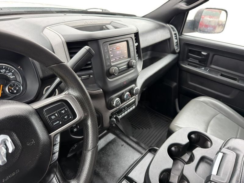 Chrome Appearance Group: Chrome Grille-Surround; Matte Black Mesh Grille with Chrome; Center Hub; Bright Front Bumper. Quick Order Package 27A Tradesman: Urethane Shift Control; Halogen Quad Headlamps; Door Sill Scuff Pads; Glove Box; Exterior Mirrors with Supplemental Signals; Map/courtesy Lamp; Exterior Mirrors Courtesy Lamps; Trailer Tow Mirrors; Rear Dome Lamp; Exterior Mirrors with Heating Element; Black Key Fob; Matte Black Grille-Surround; Mirror Running Lights; Black Exterior Mirrors; Black Wheel Flares; Overhead Console; Overhead Cupholder Lamp; Power Black Trailer Tow Mirrors. Uconnect 3 Radio with 5" Display. Chrome Tubular Side Steps. ParkView Rear Back Up Camera. Remote Keyless Entry. Trailer Brake Control. 225/70R19.5G All Traction Tires. Front Fog Lamps. SiriusXM Satellite Radio. Transfer Case Skid Plate Shield. **Equipment listed is based on original vehicle build and subject to change. Please confirm the accuracy of the included equipment by calling the dealer prior to purchase.**